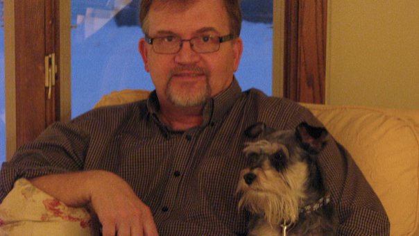 (a picture of me in Wrigs, our trusty, no longer young Schnoodle)